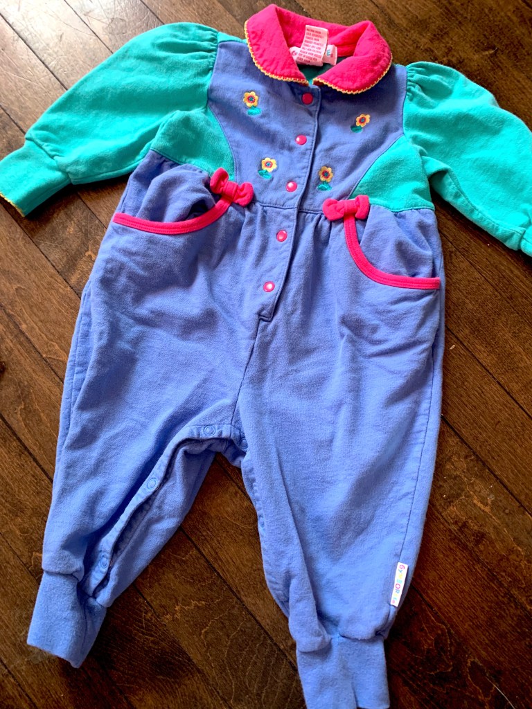 On a slow pedestrian day, I will do a thrift store browsing trip with them. I will always try to look for all kinds of Children’s literature books and cute vintage 90’s outfits for Polaris. One of my favorite clothing articles I’ve found with them is this cute colorblock Gymboree onesie that’s extremely similar to what my parents put me in when I was their age.