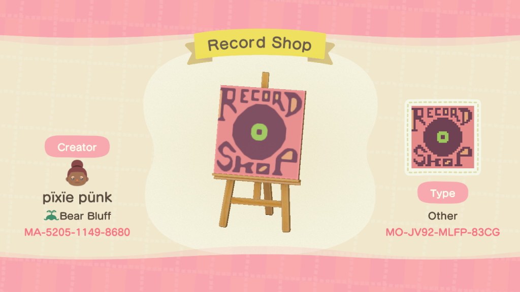 While the baby is asleep and I have the ability, terraforming, getting to meet new neighbors, and meeting in game foraging or neighbor support goals on my island have been relaxing and extremely fulfilling. I’m hooked on the soft and sweet graphics and infinitely stimulated by the range of customization you can have with everything about your character, home and island. Recently I’ve accomplished building my Record Shop where I have made a custom record crate graphic, rotate out albums at the vendor stalls and D.J. K.K. Slider songs on my turntables.