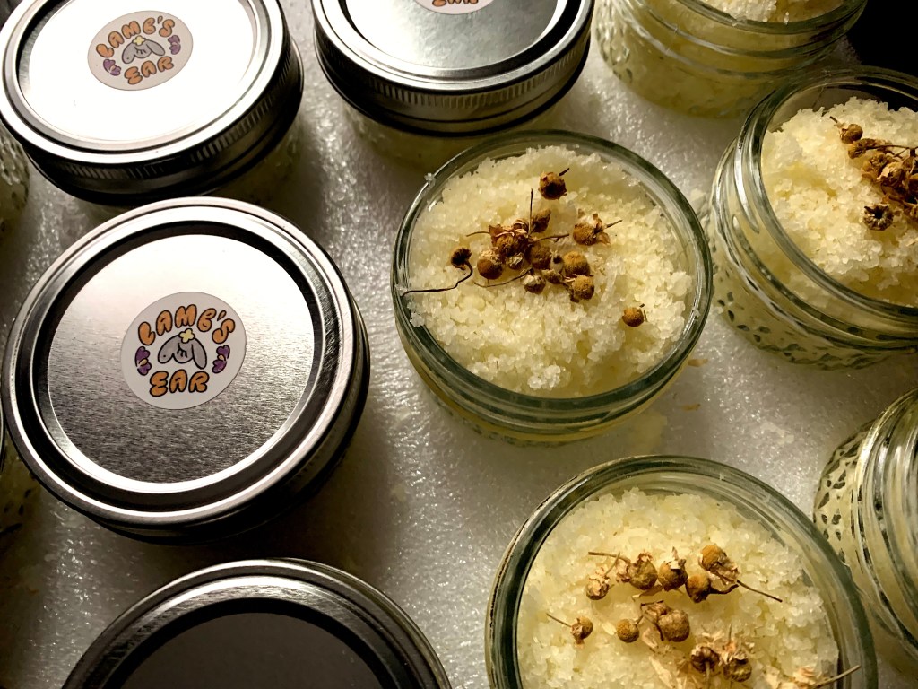 One similar issue I came across in bouts of depression with postpartum is being able to have energy to moisturize after showering. So I made a moisturizing salt scrub to be applied directly after showering or bathing. It’s infused shea butter, beeswax, ginger and orange infused olive oil with sweet orange and bergamot essential oil. It’s given a lot of ease to me for freshening up, leaves my skin feeling polished and smelling of citrus.